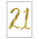 Cartes de numéro de tableau - Numéro 21 - avec effet feuille d'or (faux, imprimé comme image) sur arrière - plan blanc