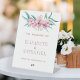 Mariage moderne et rustique, panneau de piédestal de table d'accueil avec un bouquet de magnolia rose vif à la mode avec feuillage d'eucalyptus vert menthe et deux petits coeurs en cuivre. +++++++++++++++++++ Facile à customiser avec les noms de mariée et de mariée, date et lieu. +++++++++++++++++ Convient pour le jardin de jardin extérieur, les réceptions de mariage romantiques et fleuries.