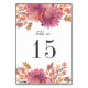 Fleurs et feuilles dans la couleur d'automne classique entourent ce numéro de table de mariage élégant. Le design se répète à l'envers. Coordonné avec notre suite de faire-part de mariage de rêve d'automne.