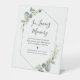 En mémoire d'amour, affiche commémorative mariage. Un design géométrique avec aquarelle feuilles de verdure eucalyptus avec un cadre géométrique élégant. Personnalisez le texte et les couleurs sur ce panneau commémoratif mariage.