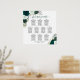 Ce magnifique tableau de sièges mariage comprend 10 tables ornées d'un design floral rustique avec des roses délicatement peints à la main dans les tons vert émeraude et sauge, avec des accents d'eucalyptus feuilles luxuriants et verdure du jardin. L'aménagement peut accueillir jusqu'à 100 personnes, avec 10 places disponibles par table. L'élégant titre de calligraphie de script dit "s'il vous plaît trouvez votre table" et les noms du couple et de leur mariage apparaissent en bas. Ce tableau de sièges est à la fois esthétique et fonctionnel, ce qui permet aux invités de repérer facilement leurs sièges désignés tout en ajoutant à la beauté globale de votre réception de mariage.