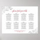 Ce magnifique tableau de sièges mariage présente un design chic et sophistiqué avec du texte gris foncé et rouge sur un arrière - plan blanc. Le titre est une élégante calligraphie de script lisant : s'il vous plaît trouver votre table. Les coins sont décorés de fraises argentées en faux feuillage, dans un motif floral délicat. Comprend 8 tables ou 80 personnes avec 10 places par table. Une belle façon d'aider vos clients à trouver leurs tables à la réception tout en ajoutant une touche de style.