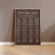 Poster de tableau de sièges mariage Brown conçu pour un mariage de 12 tables. Contactez-moi pour obtenir de l'aide sur vos personnalisations ou des demandes pour un nombre différent de tables ou d'invités. La couleur arrière - plan de ce signe peut également être modifiée pour correspondre à vos propres couleurs mariages.