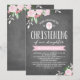 Invitation de Christening personnalisable avec des fleurs d'aquarelle sur un arrière - plan de tableau noir.