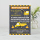Cette invitation de fête d'anniversaire du garçon en construction comporte un camion à benne mignonne et un grain. L'arrière - plan se compose d'une image scannée de tableau noir et d'un motif rayé en diagonale en jaune et noir en haut et à la base de l'invitation. J'ai voulu créer de nouveaux modèles de construction pour le magasin parce que c'est un thème populaire. Vous pouvez trouver d'autres invitations de construction au magasin avec et sans photo. Cette invitation en construction peut être utilisée pour une gamme d'âges, est idéal pour une fête d'anniversaire en construction et est prêt à être personnalisé.