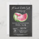 Invitation Baby shower de pastèque. Baby shower de fille. Fête à thème Melon. Rose et vert. Vacances d'été. Tableau noir et blanc Arrière - plan. Numérique imprimable. Pour plus de personnalisation, cliquez sur le bouton "Customiser" et utilisez notre outil de conception pour modifier ce modèle.