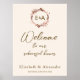 Un simple signe de dîner de répétition de pêche légère à la feuille d'or rose floral chic. Facile à personnaliser avec vos détails. Conception de l'enseigne de la répétition boho moderne modifiable, personnalisable, calligraphie police manuscrite, simple, élégant.