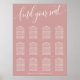 Bienvenue à vos invités avec cette élégante carte de sièges mariage rose rose poussiéreux. Doté d'un design minimaliste et d'un script moderne qui dit trouver votre siège, ce tableau de sièges est parfait pour un mariage élégant et sophistiqué. Les couleurs douces et la disposition soignée confèrent à vos hôtes un aspect raffiné et organisé, leur permettant de trouver facilement leur place. Customisez avec vos noms et vos arrangements de table pour créer un ajout unique et cohérent à votre décor mariage. Ce tableau de sièges peut accueillir jusqu'à 12 tables, ce qui en fait l'endroit idéal pour une célébration bien planifiée et élégante.