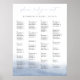 Tableau des sièges invités mariages en gris foncé et blanc avec aquarelle côtière détaillant le long des caractéristiques du bas "s'il vous plaît trouver votre siège" en haut dans élégant script de calligraphie lettrage, avec vos assignations de table invités en dessous, arrangé par ordre alphabétique sur quatre rangées. Peut accueillir jusqu'à environ 100 personnes; utilisez l'outil de conception pour réduire la taille des polices si vous avez besoin de plus d'espace.