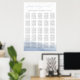 Tableau des sièges invités mariages en gris foncé et blanc avec aquarelle côtière détaillant le long des caractéristiques du bas "s'il vous plaît trouver votre siège" en haut en lettrage de script de calligraphie élégant, avec vos assignations de table invités sous. Espace prévu pour 25 tables maximum.