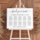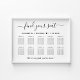 Poster chic et téléchargeable pour un maximum de 10 tables avec "Trouvez votre siège" dans un script élégant avec des swashes, vos noms et date de mariage réunis par un coeur et "Nous sommes si heureux que vous soyez ici" dans une typographie moderne simple. Sélectionnez l'option de téléchargement numérique à modifier avec des modifications dernières minutes et imprimer localement.