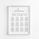 Poster chic et téléchargeable pour un maximum de 12 tables avec "bienvenue" dans un élégant script avec des swashes, "Trouvez votre siège" dans la typographie serif classique, vos noms et la date mariage réunis par un coeur et les numéros de table et les noms d'invités dans une simple typographie moderne. Sélectionnez l'option de téléchargement numérique à modifier avec des modifications dernières minutes et imprimer localement.