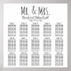Un tableau simple et facile à customiser noir et blanc des sièges de réception de mariage avec les mots "M. & Mme" et les noms de la mariée et du marié en haut (Changez ce texte à ce que vous voulez). Sur la droite, vous pouvez utiliser le modèle pour remplir facilement les noms de vos invités par table. Une fois que vous avez terminé, choisissez votre taille d'affiche et assurez-vous de cliquer sur "Customiser!" pour modifier les couleurs et les styles de police, supprimer les tables, ajouter des tables, réorganiser/redimensionner des choses, etc. pour vraiment personnaliser votre journée spéciale!