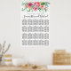De belles pivoines roses créent une jolie bordure florale le long du sommet de ce tableau de sièges. De plus petites fleurs bleues d'eau ajoutent à l'aménagement floral. Beaucoup de verdure aérée, de feuilles et de vignes pendantes lui donnent une ambiance botanique moderne. Les noms des couples mariages sont écrits dans un script tendance populaire. La do-it-yourself mariée peut créer un joli tableau de sièges pour sa réception à un prix très abordable.