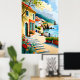 Un charmant tableau de village dépeint une scène côtière où un village pittoresque est niché au bord de la plage, face à une falaise pittoresque. Le village est orné de fleurs colorées, et les vagues viennent se poser doucement sur le rivage. Le ciel nuageux ajoute une touche de sérénité à la scène, créant une atmosphère paisible et accueillante. Peinture d'art pour votre décor maison. Vous pouvez acheter avec cadre et papier d'art. Taille de l'image du fichier original 29'x40' pouces (300 ppp).