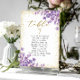Tableau des numéros de table de la lavande violet or - Tableau des sièges