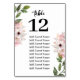 Tableau des numéros de table de la végétation florale rustique.
