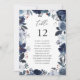 Placez vos invités facilement et dans le style avec votre Blue & Navy Floral Table Numéro Cartes de siège. C'est 2 choses en un - un numéro de table et un tableau de sièges ensemble. Fabriqué à la main peint, florale bleu marine et bleu poussiéreux (fleurs) et baies rouges avec calligraphie. Ce style conviendra aux mariages bleus, aux mariages d'hiver, aux mariages de automne, aux mariages rustiques et aux mariages sur la plage.