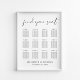 Poster minimaliste téléchargeable pour un maximum de 12 tables avec "Trouvez votre siège" dans un script chic, les numéros de table et les noms de vos invités dans une simple typographie moderne et vos noms et date de mariage dans une élégante typographie serif. L'option de téléchargement numérique vous permet d'éditer avec des modifications de dernière minute et d'imprimer localement.