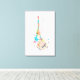 Impression artistique de la Tour Eiffel avec une palette d'artiste, peinture rayée de la Tour Eiffel et fleurs de cerisiers sur toile tendue. Mesures 24"x 36".