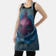 Delantal artístico y único con maladie surrealista : una rosa azul de pétalos platados guarda en su centro una cebolla morada con ojos llorosos. Idéal para amantes del arte, la cocina creativa y los regalos originales.