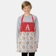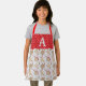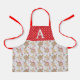 Cet adorable tablier est orné d'un arrière - plan à rayures bleues avec pain d'épices, biscuits au chocolat, biscuits au sucre étoilé et bonbons à la menthe poivrée. Top a un motif à pois rouge et blanc. Personnalisez avec une initiale.