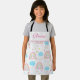 This is cute personalized apron for girls featuring boho rainbow pattern with clouds, hearts ,stars and colorful raindrops designed in pastel pink and blue muted colors. add your girl name using personalize template
