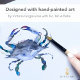 Ce tablier adulte présente un crabe dans les tons bleus nautiques. Utilisez les champs modèle pour ajouter votre texte personnalisé. Pour voir les articles correspondants visitez www.zazzle.com/dotellable Art unique et design de Victoria Grigaliunas de Do Tell A Belle.