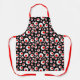 Ce tablier de cuisine a un cercle géométrique abstrait motif de boules rouges avec de plus grandes boules blanches éparpillées sur un arrière - plan noir.