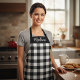 Apron dispose d'une Farmhouse moderne Noir et Blanc Buffalo Plaid Checked Motif que vous pouvez personnaliser en ajoutant votre nom ou votre texte favori.