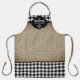 Un joli burlap intemporel et classique et un buffle noir et blanc vérifier la conception avec la couleur coordonnée sur les cravates et la sangle de cou. Un design amusant avec votre personnalisation et silhouettes blanches d'ustensiles de cuisine de base.