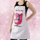 Ce tablier de cuisine est blanc avec des points rose vif et une chaise rose du milieu du siècle avec deux chats élégants, un noir blanc assis ensemble. Customisez votre texte avec le modèle.
