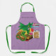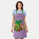 Un petit dragon vert est installé sur une planche à découper en bois sur un plan de comptoir de cuisine. Les produits de boulangerie tels que les muffins, les biscuits et les cupcakes sont tout autour du dragon de cuisine verte dans un décor de violet