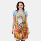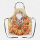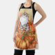 Apron pour tous vos repas automne/automne/Thanksgiving et cuisine. Un beau chat gris et blanc est posé sur une grande boîte en bois rustique de citrouilles oranges avec des feuilles d'automne colorées tout autour.