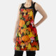 Caricature amusante tablier à motifs automnaux, avec citrouilles colorés, feuilles, baies, glands et tabourets. Parfait à porter lors de la cuisson de vos tartes citrouilles.