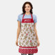 Un joli tablier d'équipage de cuisine de Noël décoré d'un motif de biscuits de pain d'épices. Personnalisez-le avec votre nom. Bordure de tablier a un motif de pois rouge et blanc avec ric rac. Fait un cadeau amusant pour Noël. Conçu pour vous par Blackberry Boulevard.