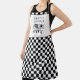Créez votre propre tablier motif noir et blanc à damiers ! Customisez les quatre zones de texte avec votre propre message ou laissez comme avec une citation douce! Un beau graphique d'ustensiles de cuisine, y compris spatule, broche à rouler, détails de fourche et de whisk et fleuris avec citation " Où l'ingrédient secret est toujours amour ". Une idée cadeau unique pour les amis, la famille et les chefs ! ©Marisu Valencia
