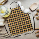 Tablier de cuisine avec un design entièrement imprimé qui présente l'image d'une fleur Dahlia jaune sur un arrière - plan noir imprimé dans un motif extensible. Un joli design floral ! Sélectionnez la taille de votre tablier.