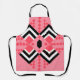 Ce tablier est décoré dans un style art déco avec des formes diamant en noir, blanc et rose sur un champ de pastèque.