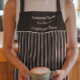 Tablier d'affaires à rayures noires et grises Ce tablier propre et simple est parfait pour n'importe quel restaurant, spa, salon de coiffure, etc. Le texte est entièrement personnalisable et peut être modifié en fonction du nom de votre entreprise et du nom de vos employés.