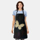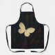 L'image montre un tablier avec un grand papillon doré au centre sur un arrière - plan texturé foncé avec des nuances subtiles de violet et de bleu.