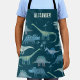 Beaucoup de dinosaures bleus, Tyrannosaurus rex, Spinosaurus, Stegosaurus, Diplodocus et Tricératops sur un arrière - plan vert turquoise foncé. Modifiez le nom pour personnaliser. Art original de Nic Squirrell.
