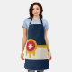 Apron avec un design avec le drapeau de Tulsa, Oklahoma. Un drapeau beige et bleu marine avec un bouclier or Osage contenant un cercle rouge et une étoile beige à six branches