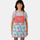 Un tablier mignon et sucré qui présente un motif délicieux et ludique de petites fraises éparpillées sur un arrière - plan bleu ciel doux. Les fraises sont rendues dans un rouge vif avec des feuilles verts, et elles sont entrecoupées de petites fleurs de fraises blanches ou jaunes clairs, ce qui ajoute au charme. L'ensemble est gai, frais et sucré, idéal pour les enfants. Le nom est personnalisable.