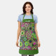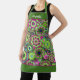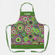 Tablier Fleurs funky rétro - Vert rose avec nom de script