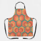 Cet tablier a un design géométrique d'hexagones dans des ensembles de trois qui ressemblent à des fleurs en or, orange et rouge sur un champ de turquoise.