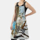 Le chat norvégien de la forêt assis près d'un arbre avec un dragon bleu assis dans un casque de bouteille. Neige autour d'eux, épée et hache viking avec eux.