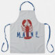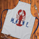 Tablier d'huître avec le texte "Maine". Un grand homard rouge est debout sur un fond gris argent avec des lettres bleu foncé. Ce long tablier est parfait pour les hommes qui aiment cuisiner. Le design se transfère également bien sur le tablier plus court et sur la taille enfant. Le texte peut être facilement retiré ou changé pour quelque chose qui convient à l'espace. Un exemple serait "Papa" ou un nom plus court.