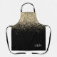 Parties scintillant à étincelle noire et or Nom du monogramme Apron. Cela rend le cadeau parfait pour 16 ans, mariage, douche nuptiale, anniversaire, baby shower ou bachelorette pour quelqu'un qui aime le luxe glam et les styles chic.