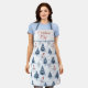 Un joli tablier de Noël de Snowman et d'arbres enneigés avec des snowmen portant des chapeaux de Père Noël rouges et des sapins recouverts de neige avec un arrière - plan blanc enneigé. Un joli design festif pour la saison des fêtes.